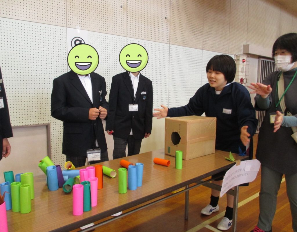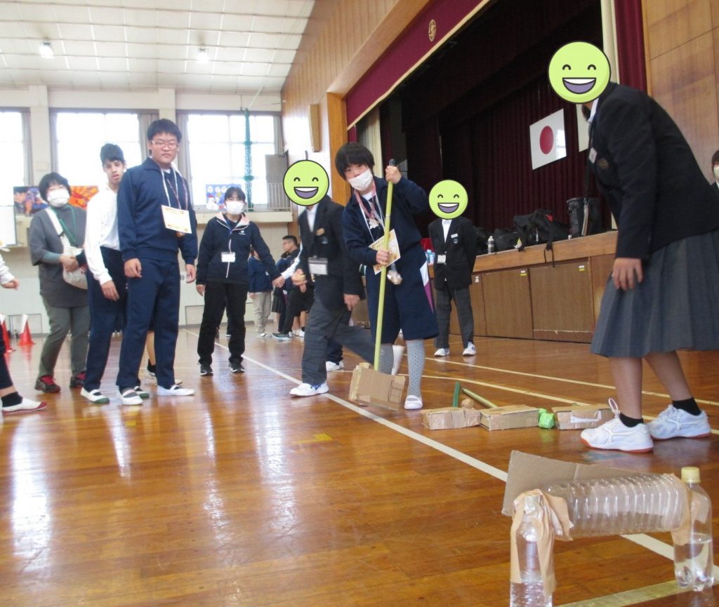 「空気砲」「これはなんでしょう」「ゲートボール」など11種類のゲームを楽しみました。ペアの友達とも一緒にブースを回り、みんなで楽しい時間を過ごすことができました。