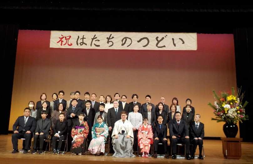 当日は風花が舞う寒い朝でしたが、令和5年度に卒業したはたちの入会者の方19名を祝し、御来賓を始め在学中に関わりの深かった先生も含め、総勢80名の方が御列席くださいました。