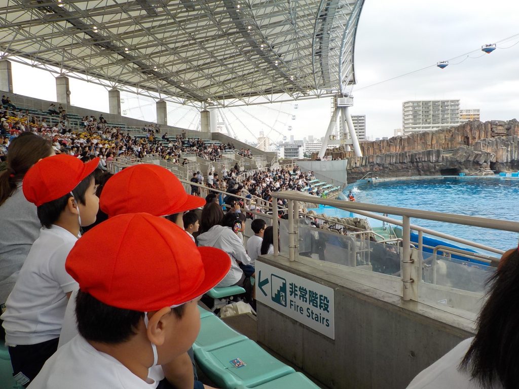 水族館に到着すると、まずイルカショーを観覧しました。豪快なジャンプを見て思わず「すご~い!」と声をあげたり、立ち上がって歓声を送ったりと、子供たちは大喜び。ショーを存分に楽しむことができました。
